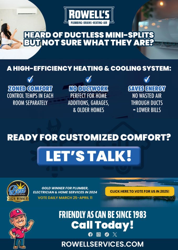 "Friendly As Can Be Since 1983!" When you need help with your plumbing, drains, heating, cooling or electrical in Center Harbor, you can always rely on Rowell's Services! Call us now or book online!